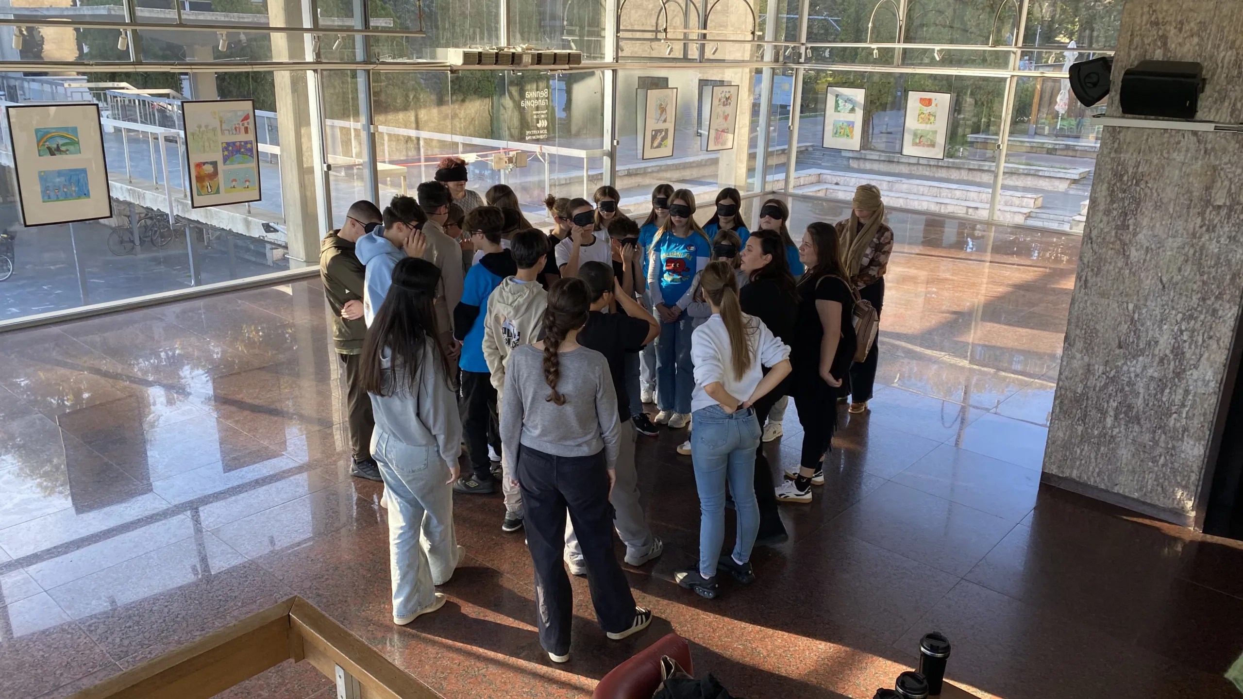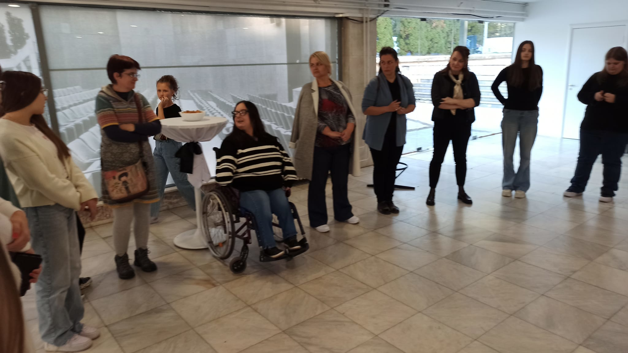 U holu ispred sale, Ema Štefanac je vodila radionicu poverenja i neverbalne komunikacije “Koraci u pravom smeru – bez pogleda i reči”. Učesnici su iz korpice izvlačili brojeve i sa povezom preko očiju pokušavali — bez govora — da se poređaju po redosledu svojih brojeva. Naizgled jednostavan zadatak zahtevao je pažnju, osluškivanje i međusobno poverenje. Bilo je smeha, nesigurnih koraka i međusobne pomoći, ali i mnogo razumevanja i podrške. Kroz igru su osetili koliko su poverenje, strpljenje i saradnja važni u svakom zajedničkom poduhvatu.